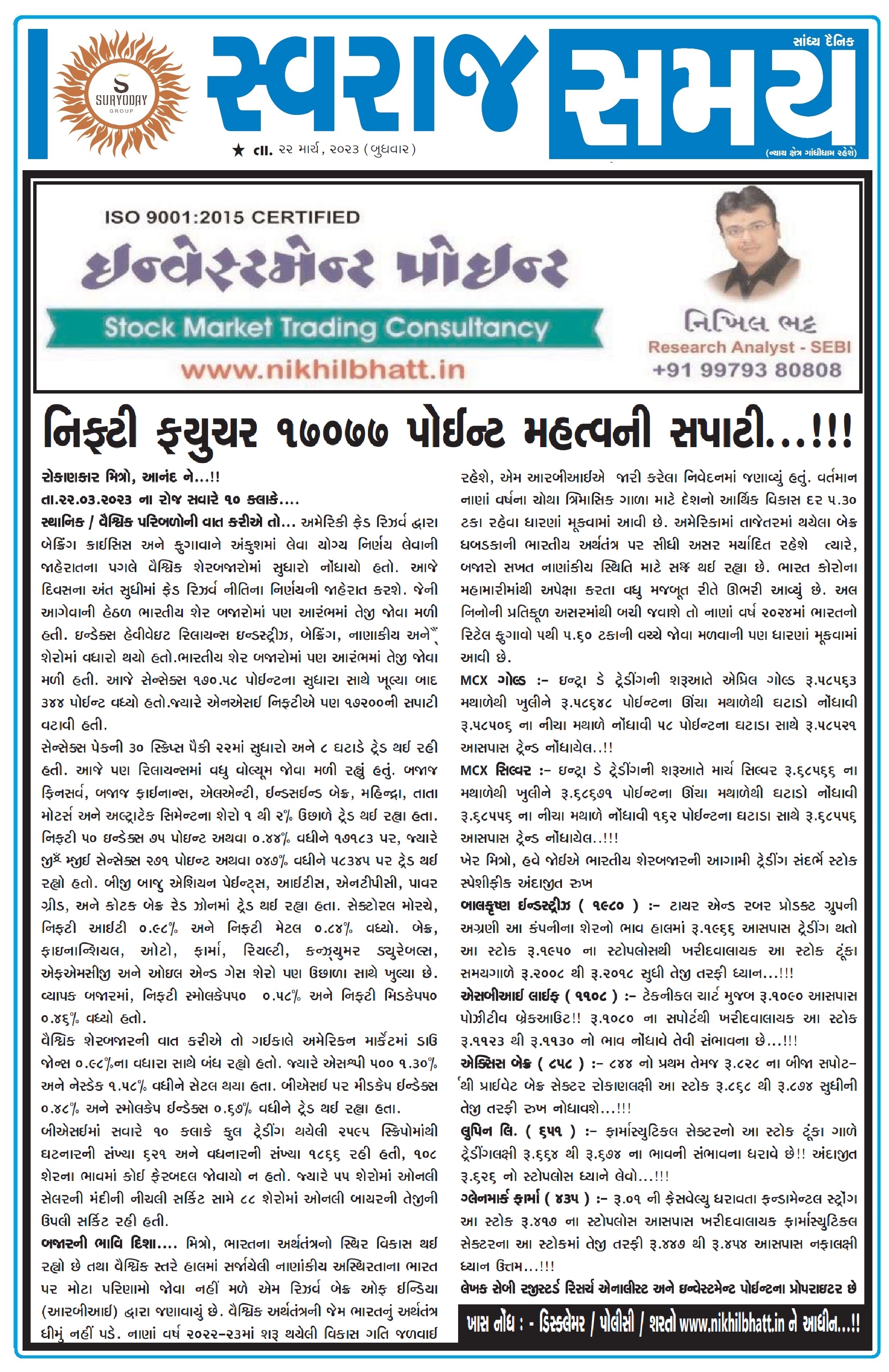 INVESTMENT POINT / SWARAJ SAMAY - 22.03.2023